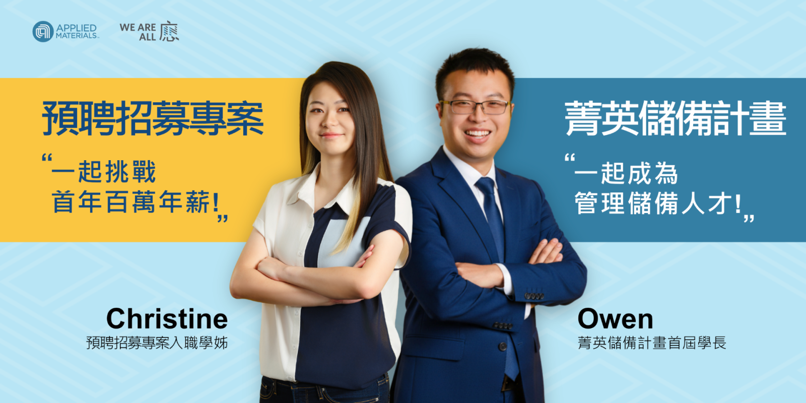 全球半導體設備領導品牌 台灣應用材料,誠摯邀請理工與商管領域的準畢業生加入我們的兩大新鮮人招募計畫,提前卡位職涯起跑點!